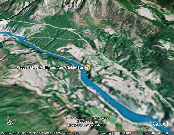 The Fraser River Platinum property, located 3 km northwest of Lytton BC in an area known as the Van Winkle Bar,
